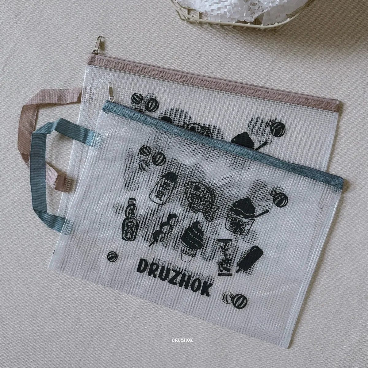文具、課堂用品、小玩具總是散落一地這款收納袋超實用!🤩🤩🤩材質防水不怕濕(颱風天例外😂透明網格設計 內容物一目了然有提把方便攜帶每個小細節都是貼心設計簡單實用又不失童趣😍尺寸約33*24 (放A4紙張沒問題ㄛ!規格:粉 / 藍