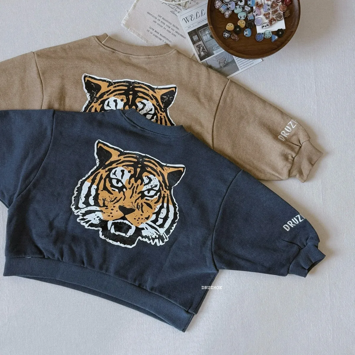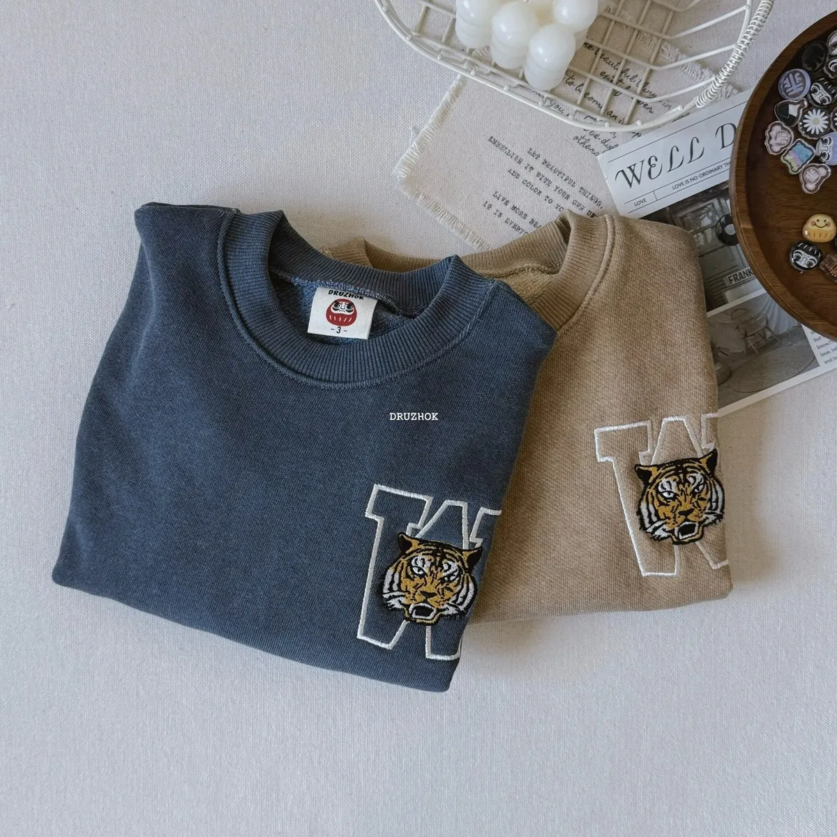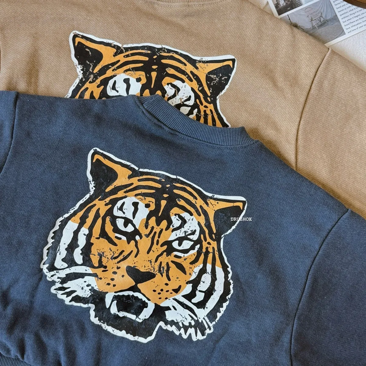 【ᴅʀᴜᴢʜᴏᴋ訂製】今年秋冬 我們也要ㄧ起穿洗舊字母老虎 寬鬆大學上衣