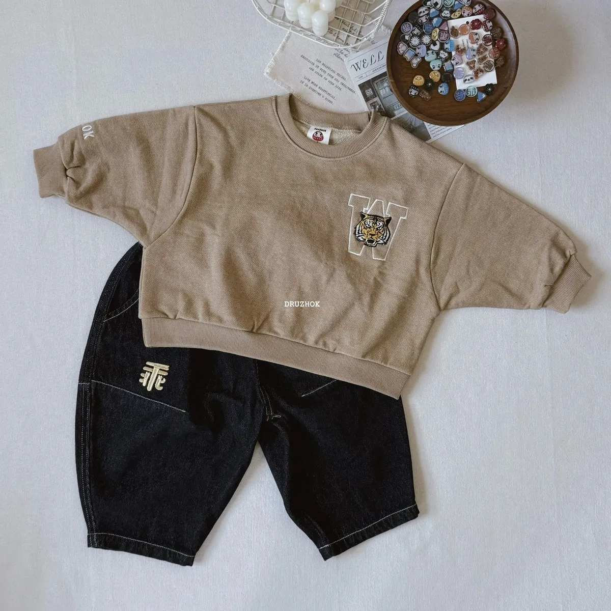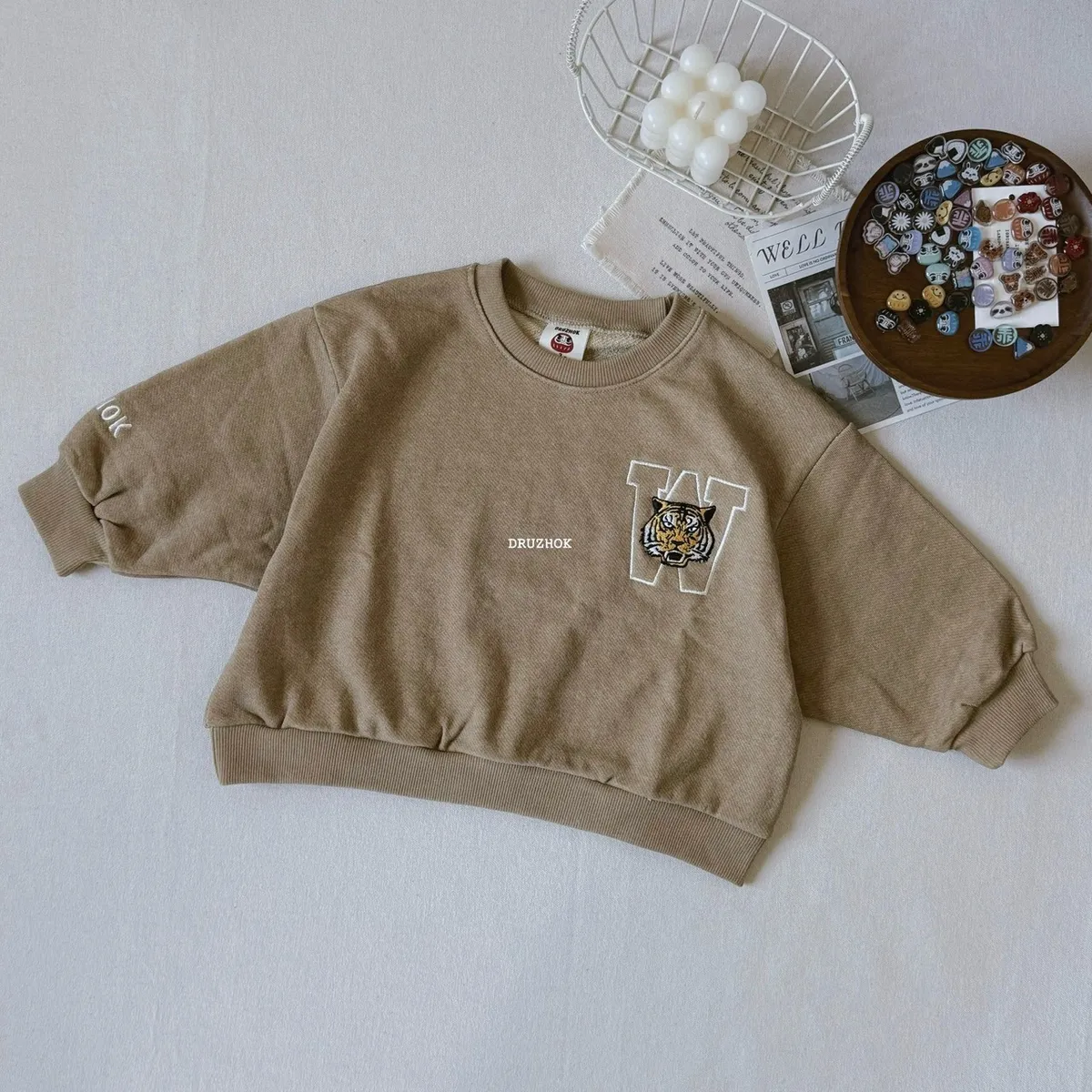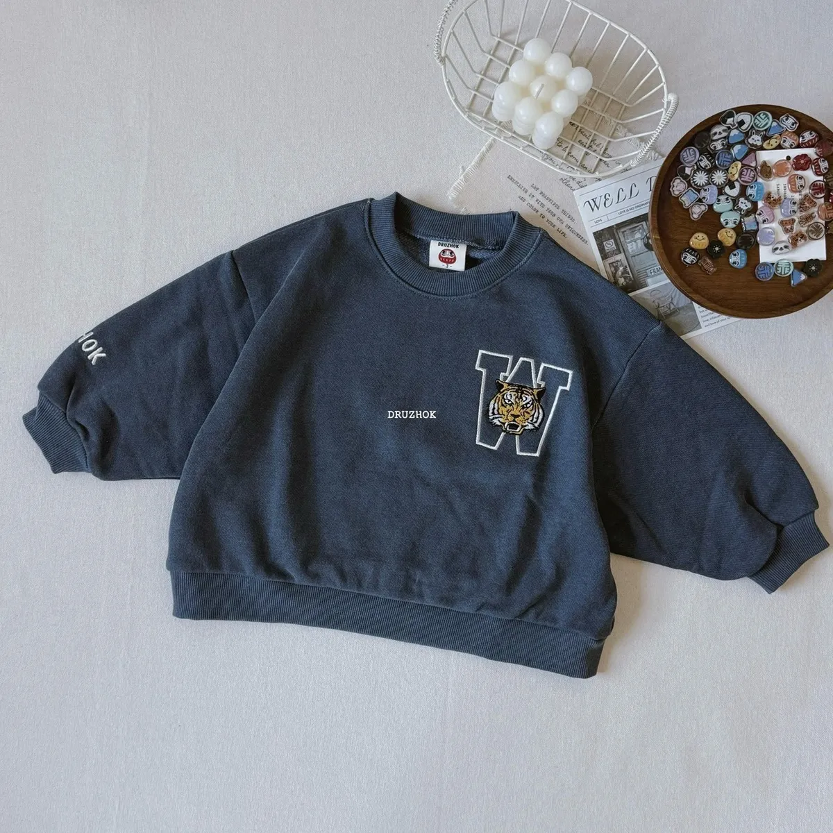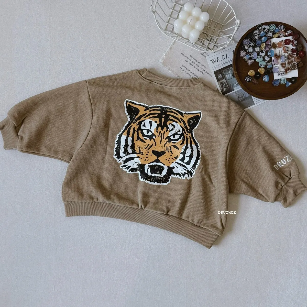 【ᴅʀᴜᴢʜᴏᴋ訂製】今年秋冬 我們也要ㄧ起穿洗舊字母老虎 寬鬆大學上衣
