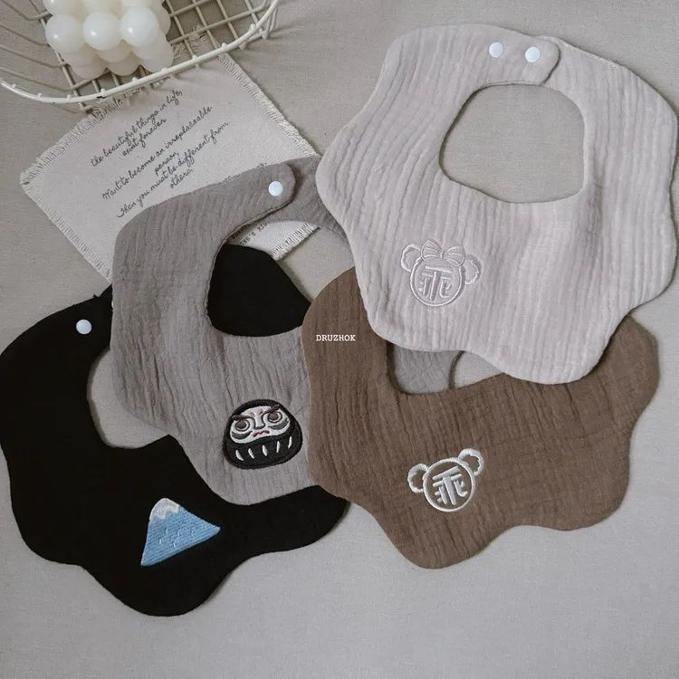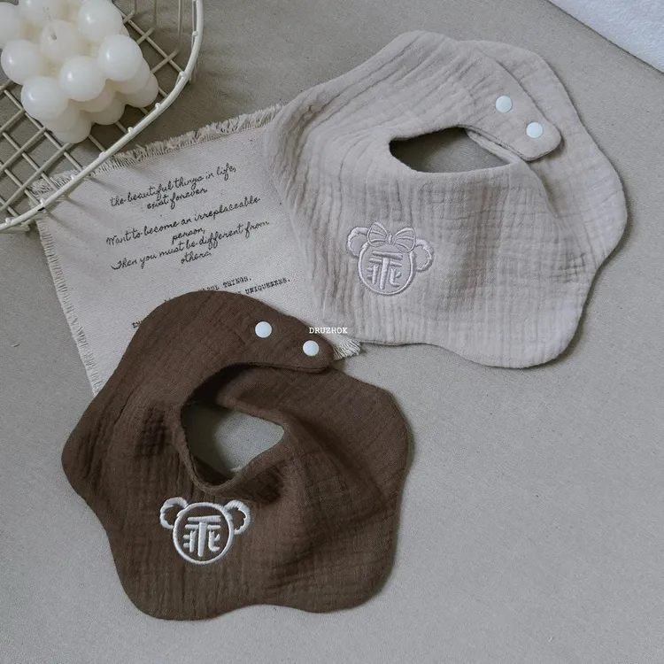 【ᴅʀᴜᴢʜᴏᴋ訂製】陪伴你可愛 大地色純棉圍兜(波浪款)