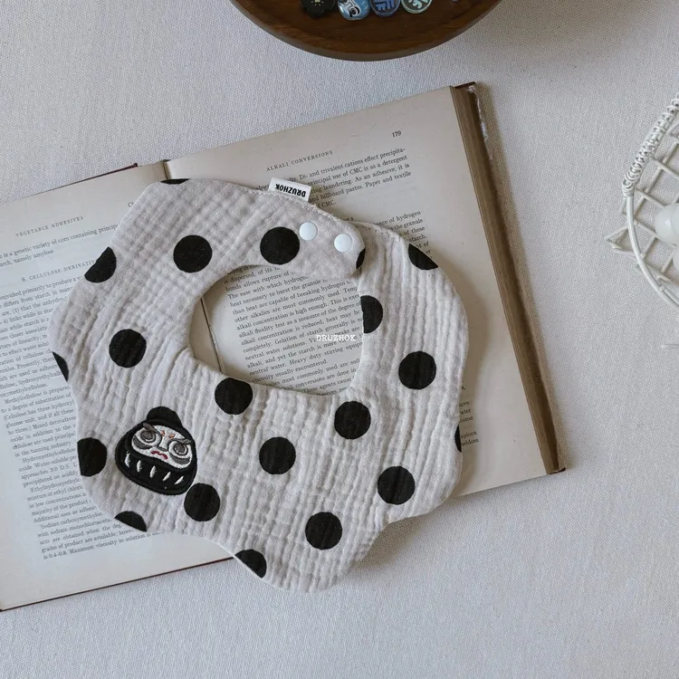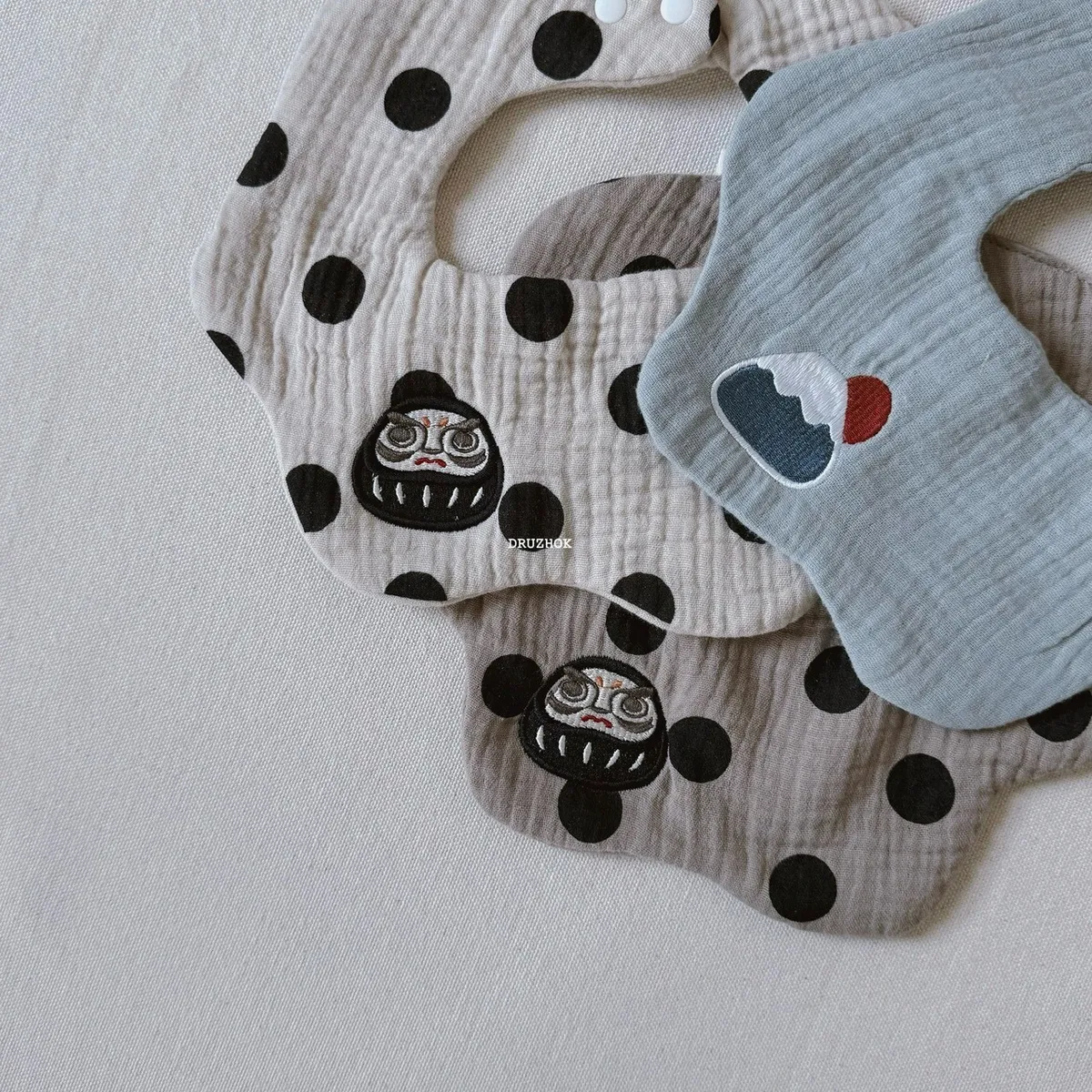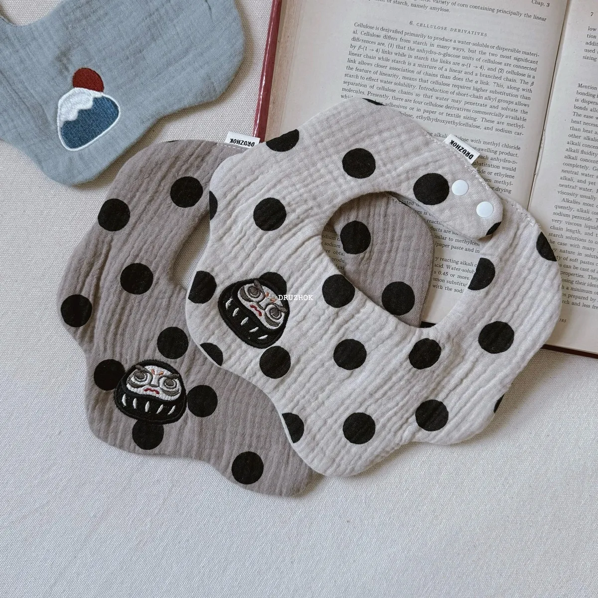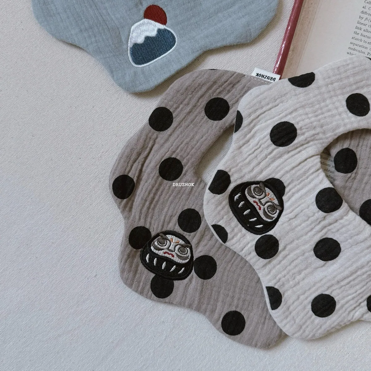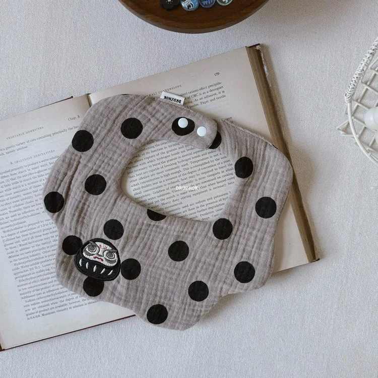 【ᴅʀᴜᴢʜᴏᴋ訂製】陪伴你可愛 大地色純棉圍兜(波浪點點款) 波點元素 真的好喜歡 男女皆宜♡ 搭上小小阿福點綴 好喜歡 好可愛 收涎的時後 喝奶的時候 流口水的時候 抱在懷裡的時候 都要圍上 簡單 耐看 每ㄧ天都要陪著寶寶可愛長大 規格:3+1隱藏共四條 / 隱藏隨機不挑款