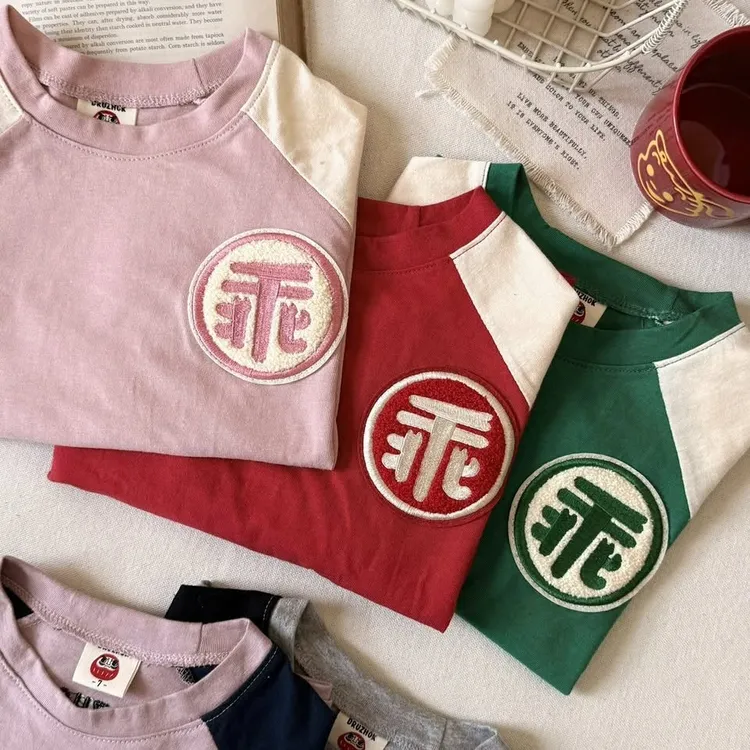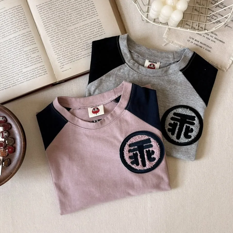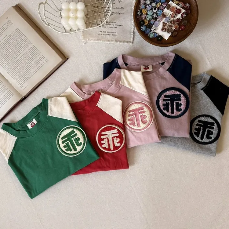 【ᴅʀᴜᴢʜᴏᴋ訂製】拼袖跳色·時時刻刻都要乖乖品牌刺繡上衣(長袖)